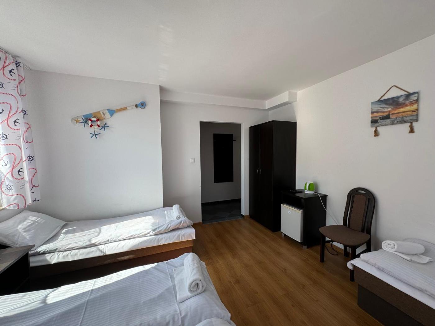 Pokój Trzyosobowy typu Classic. Jest to pokój trzyosobowy z prywatną łazienką, szafą, czajnikiem elektrycznym oraz balkonem. W tej opcji zakwaterowania do dyspozycji gości są 2 łóżka. Pokój Trzyosobowy - 3 osobowy. Powierzchnia pokoju ok.: 18 mkw. ;