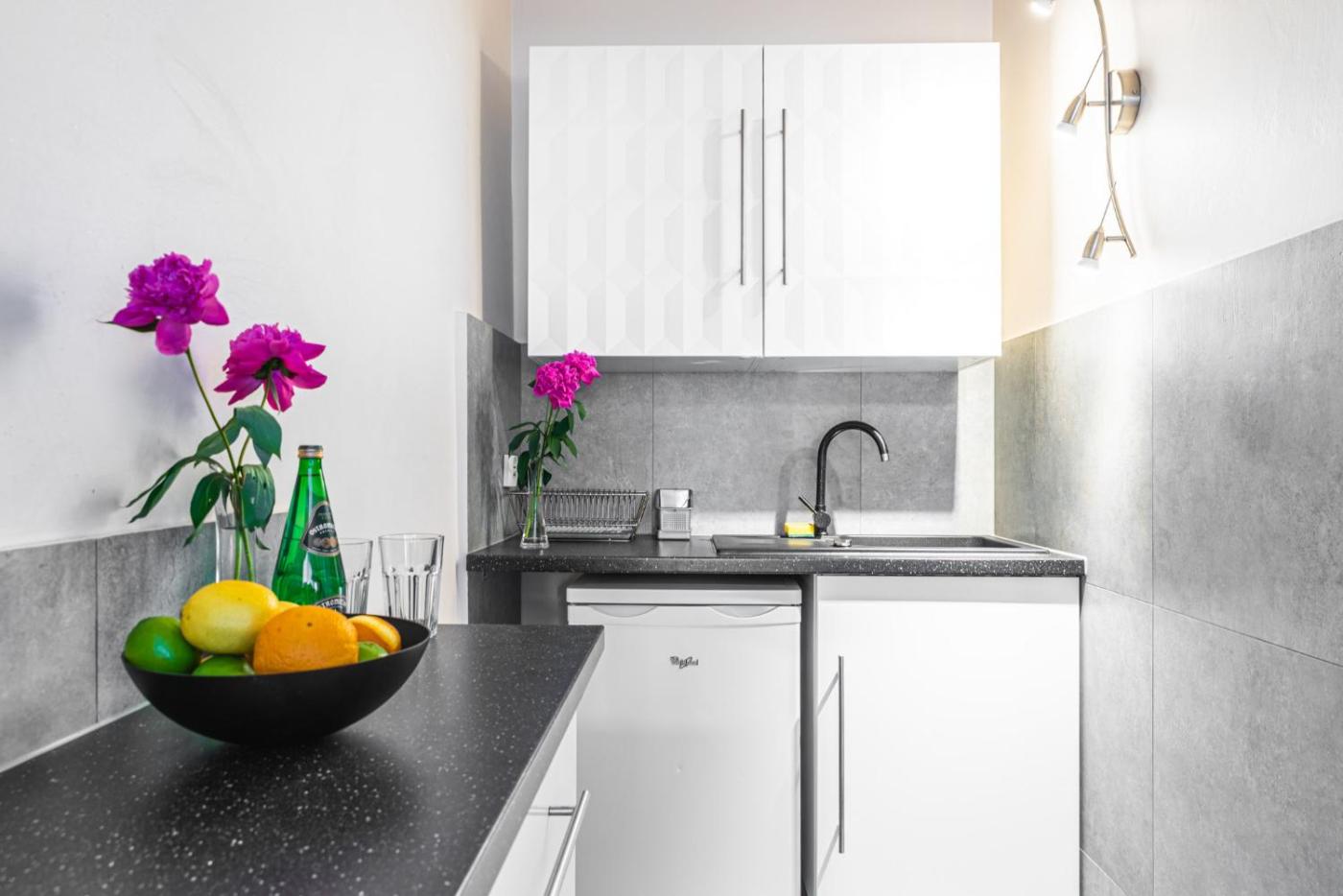 Oferta apartamentu obejmuje sypialnię (1), salon, aneks kuchenny z pełnym wyposażeniem, w tym lodówką i czajnikiem, a także łazienkę (1) z prysznicem oraz bezpłatnym zestawem kosmetyków. W apartamencie zapewniono ręczniki i pościel.