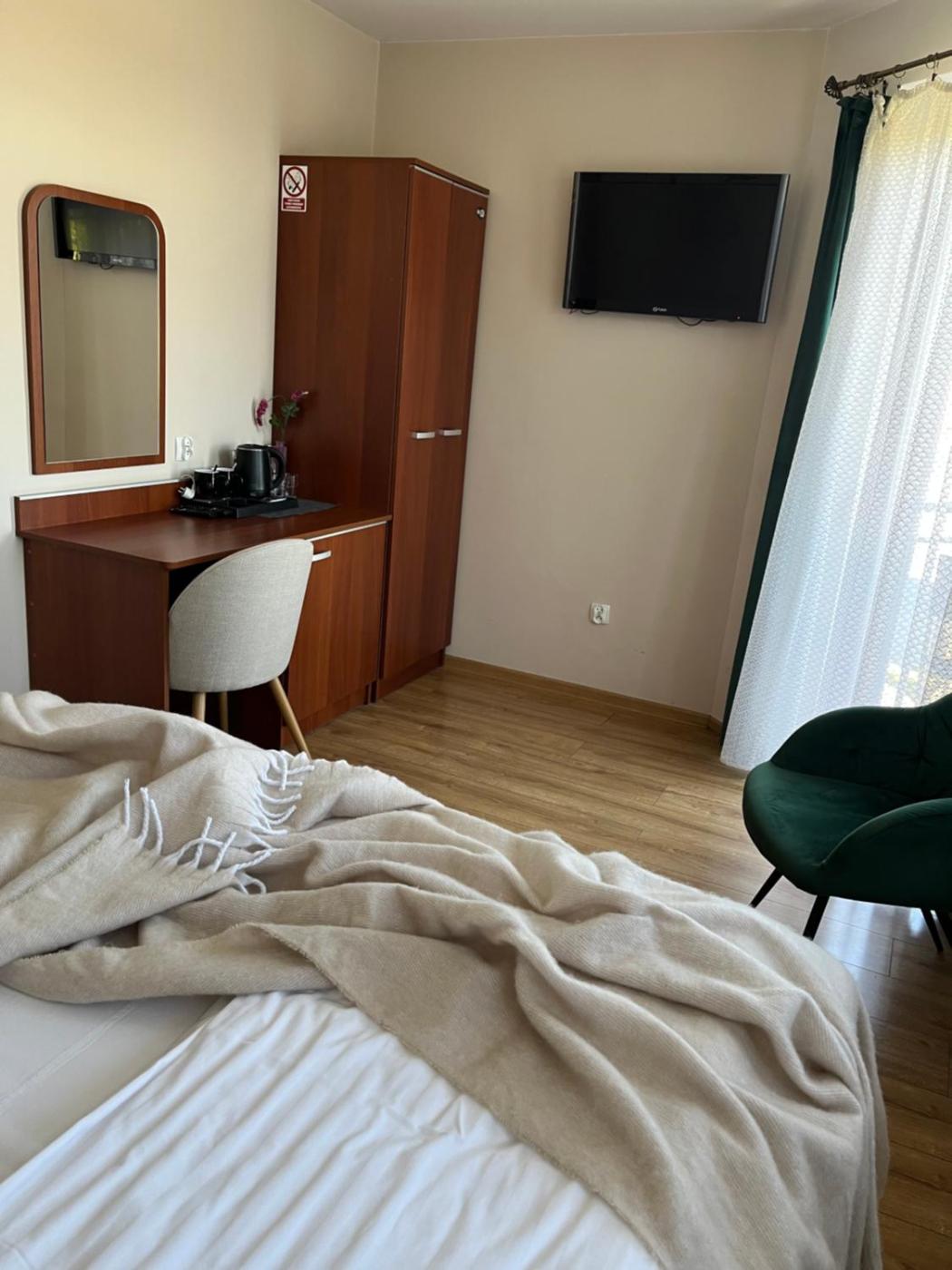 Pokój Dwuosobowy typu Deluxe z balkonem. The double room features air conditioning, a wardrobe, as well as a private bathroom boasting a walk-in shower and a hairdryer. Featuring a balcony, this double room also provides an electric kettle, parquet floors and a flat-screen TV. The unit has 1 bed. Powierzchnia pokoju ok.: 12 mkw. ;