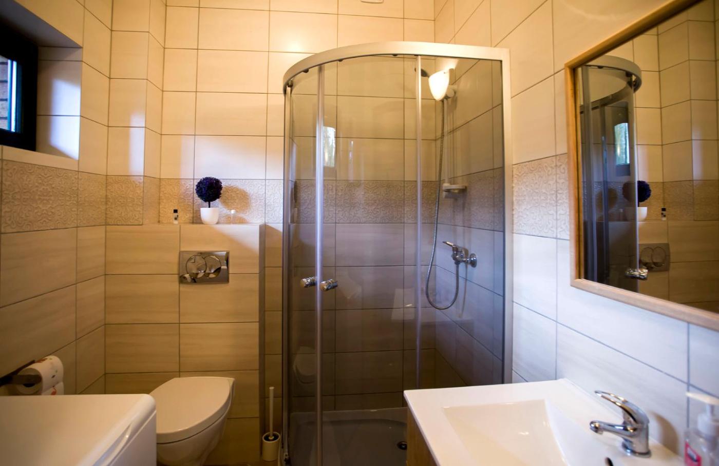 Apartament z tarasem. This apartments special features are the private pool and the fireplace. Featuring a private entrance, this apartment consists of 1 living room, 2 separate bedrooms and 1 bathroom with a shower and a hairdryer. Guests will find a stovetop, a refrigerator, kitchenware and an oven in the fully equipped kitchenette. The apartment also offers a barbecue. Boasting a terrace with garden views, this apartment also provides a washing machine and a flat-screen TV with satellite channels. The unit offers 4 beds. Powierzchnia pokoju ok.: 41 mkw.