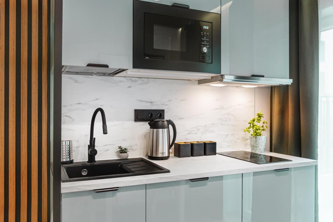 Studio typu Superior. Offering free toiletries, this studio includes a private bathroom with a walk-in shower and a hairdryer. Meals can be prepared in the kitchen, which is fitted with a stovetop, a refrigerator, kitchenware and a microwave. The studio offers a private entrance, a tea and coffee maker, a seating area, a flat-screen TV with streaming services, as well as city views. The unit has 1 bed. Studio - 2 osobowy. Powierzchnia pokoju ok.: 20 mkw. ;